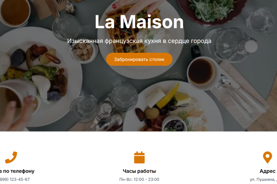 Сайт для ресторана, создан на react, запускать через Node.js. Можно поставить на любой хостинг где поддерживается node. Создано с небльшой помощью нейросети.