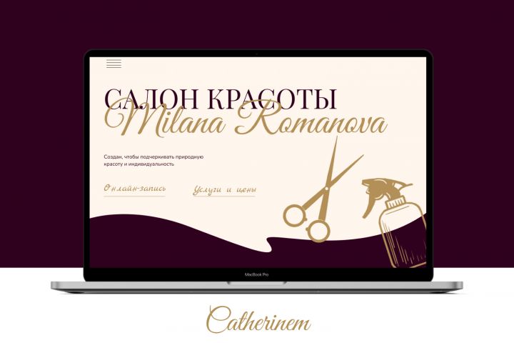 Одностраничный сайт для салона красоты с уникальным дизайном, разработанным в фигме.