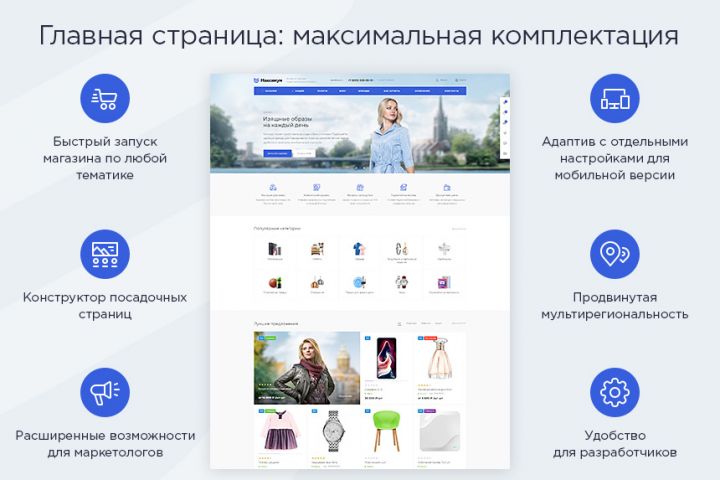 Покупатели больше не хотят просто просматривать интернет-магазин, им нужно получить эмоции. О товаре, магазине или уровне сервиса. В "Максимум" был пересмотрен каждый блок, с которым столкнутся ваши клиенты. Мы проанализировали сотни пожеланий пользователей, изучили современные тенденции и применили все это в новом решении.