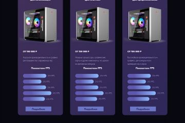 Макет в Figma и его реализация на Tilda для компании по сборке ПК с адаптацией под разные расширение экрана.