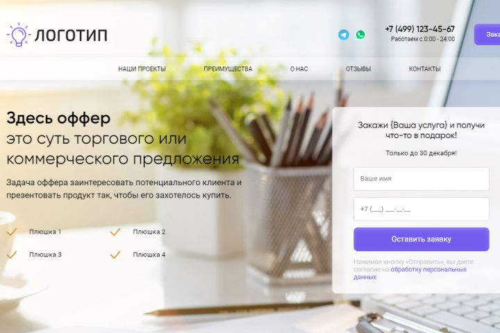 От вас требуется только предоставить текст, ваш логотип, и скрины отзывов. Мы под ключ все размещаем на вашем хостинге и сами подбираем оформление.