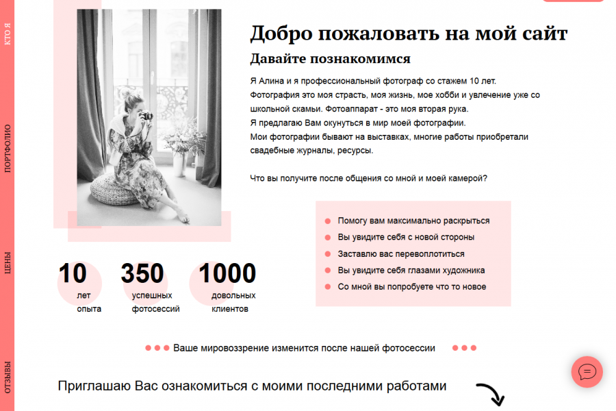 1. Яркий эффектный сайт, который создаст впечатление успешного, опытного фотографа.