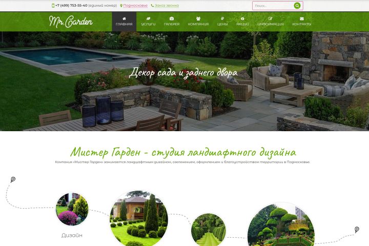 Готовый сайт для компании, которая занимается занимается ландшафтным дизайном, озеленением, оформлением и благоустройством территории в Подмосковье. Занимаетесь ландшафтным дизайном, но не хватает заказов?