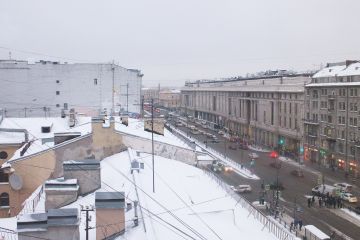 Вид на крыши Санкт-Петербурга, Лиговский проспект, площадь Восстания, зима, снег.