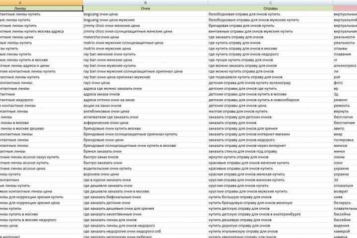 Продаю: Семантическое ядро и минус-слова по магазину оптики - готовая работа на продажу :4121