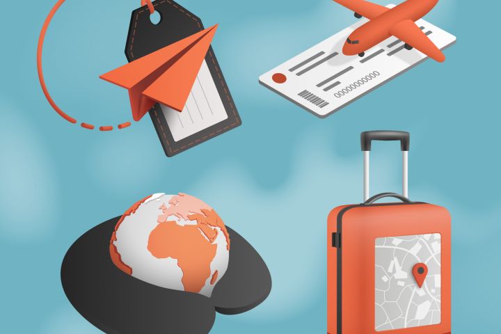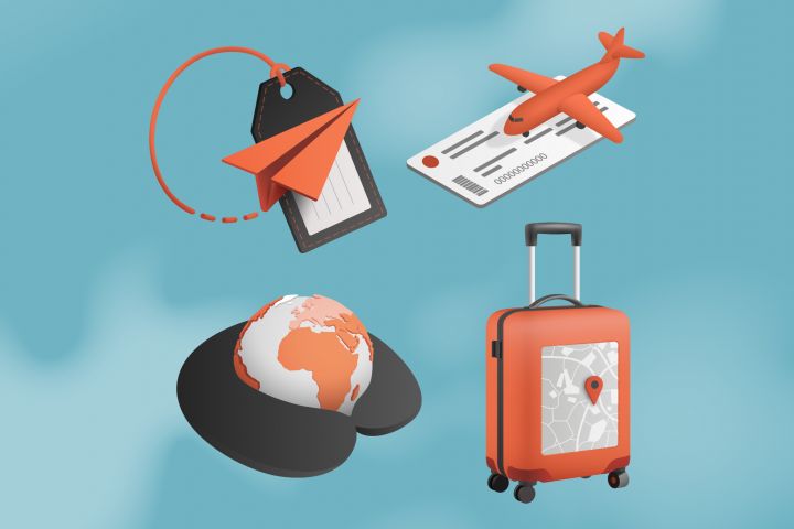 В основе проекта — идея визуального объединения знакомых предметов из мира путешествий в новые, неожиданные образы. Маршрут превращается в часть чемодана, багажная бирка становится траекторией полёта, посадочный талон — взлётной полосой, а подушка для путешествий уютно огибает земной шар.