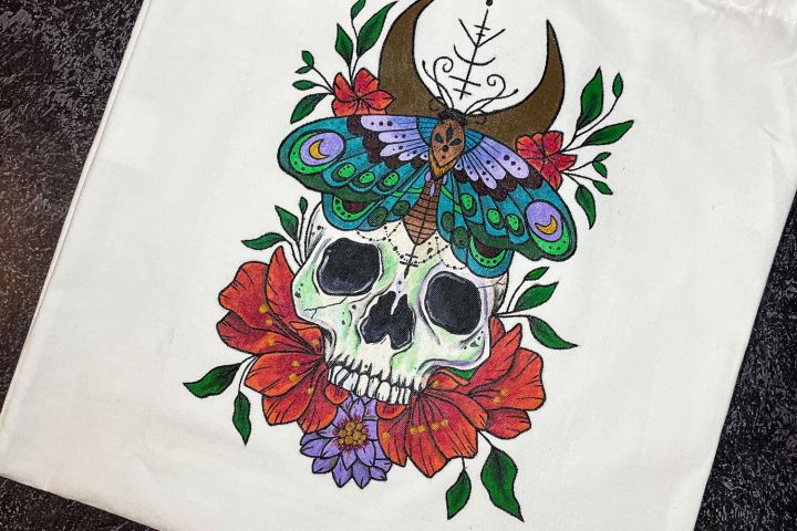 Кастомизированный шоппер «Мотылек» Использовались акриловые краски, рисунок покрыт лаком. Можно стирать и гладить. Доставка за счет покупателя