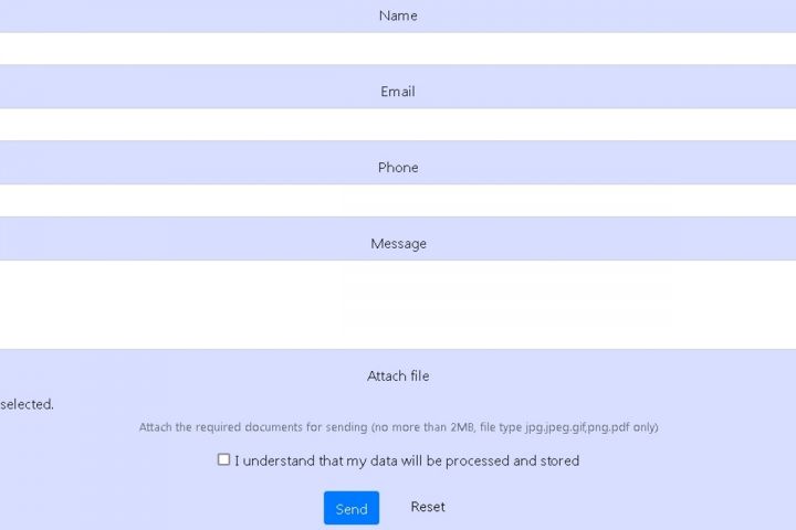 Небольшой скрипт формы контакта, с валидацией полей ввода и возможностью вложения файла к сообщению.