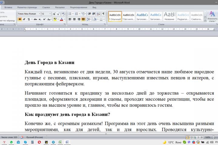 Продаю: Статья День города (Казань) - готовая работа на продажу :3980