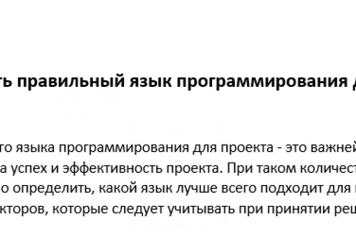 Я написала уникальную статью под названием "How to choose the right programming language for your project" на 2100 символов. Эта статья дает представление о важнейшем процессе принятия решений по выбору правильного языка программирования для проекта. Принимая во внимание такие ключевые факторы, как цель проекта, навыки команды разработчиков, сложность проекта, требования к производительности и доступные ресурсы, читатель сможет принять обоснованное решение и выбрать язык, который поможет ему эффективно достичь целей проекта.