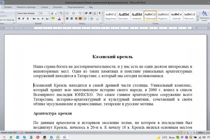 Подробная статья о Казанском Кремле, история, архитектура и т.д. Подойдет, как и для сайта, так и для журнала. Знаков без пробелов: 4338 Уникальность: 100%