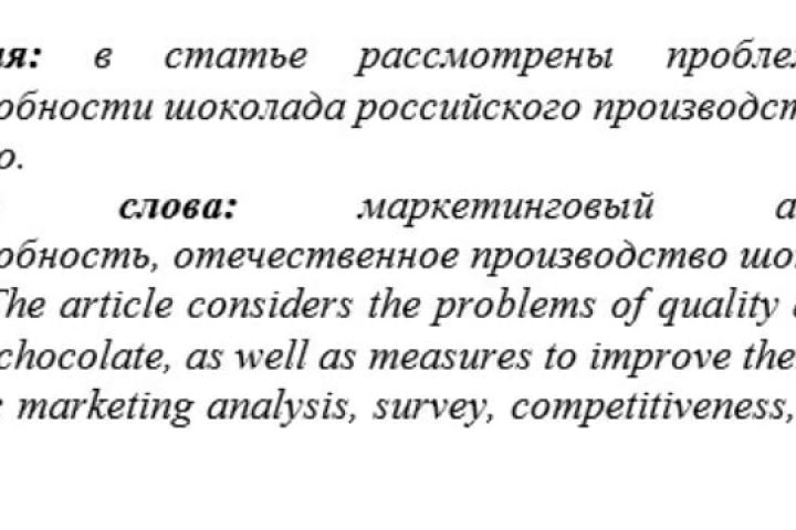 Продаю: Статья по анализу качества и конкурентоспособности российского шоколада