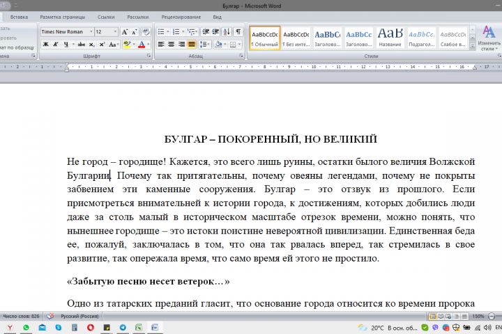 Булгар – это отзвук из прошлого! Структурированная статья об этом загадочном городе в увлекательном стиле для читателей. Знаков без пробелов: 4926 Уникальность по контент вотч: 100%