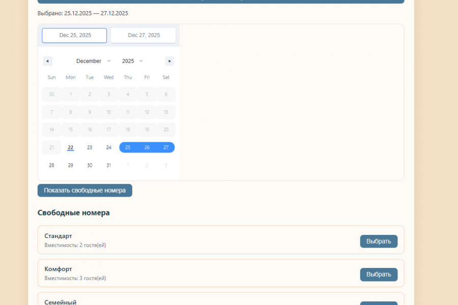 Готовая система онлайн-бронирования, которую отель может подключить к своему сайту за 10 минут. Гости бронируют напрямую, без Airbnb и Booking.com — значит, отель не платит 15–30% комиссии.