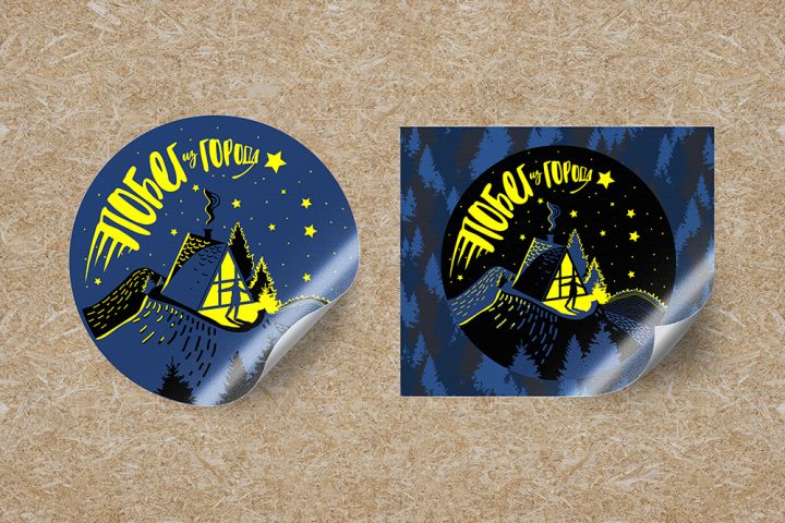 Стикер туристический, для печати на наклейках, сумках, кружках. Олицетворяет Побег из Города. Примеры использования в Превью. Формат AI или EPS. Оплата Сбер,ВТБ.