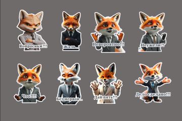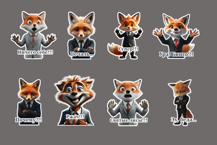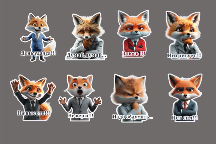 Готовый набор стикеров " Лис в деле" 3D настроения.