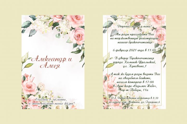 Разрабатываю на заказ свадебные приглашения, учитываю все пожелания клиента, в срок.