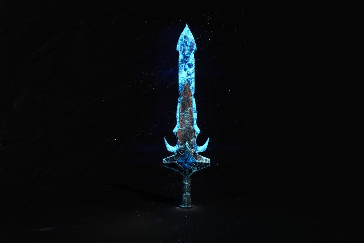 Готовая 3D model sword. Model : Vertices: 2.7k Triangles: 5.2k Textures Uv format fbx,blend https://sketchfab.com/3d-models/ice-sword-of-kings-ed0c55f5e90543efa5c0d6022a52aa77