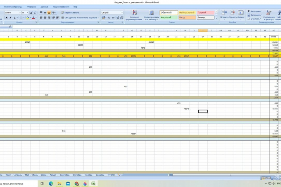 Таблица для ведения доходов и расходов. Расходы предусмотрительно разделены по