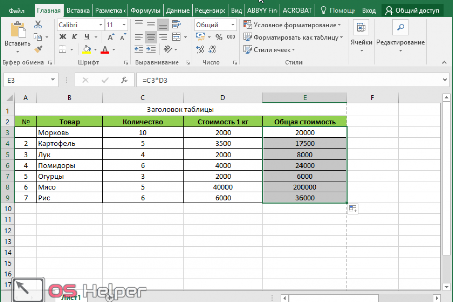 таблица excel