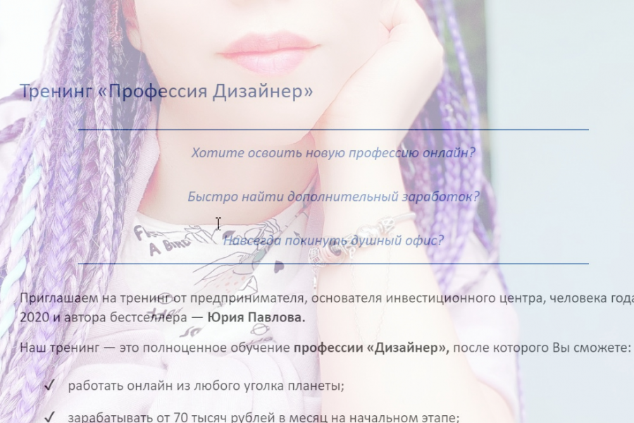 Продаю: Текст о тренинге Юрия Павлова «Профессия Дизайнер»