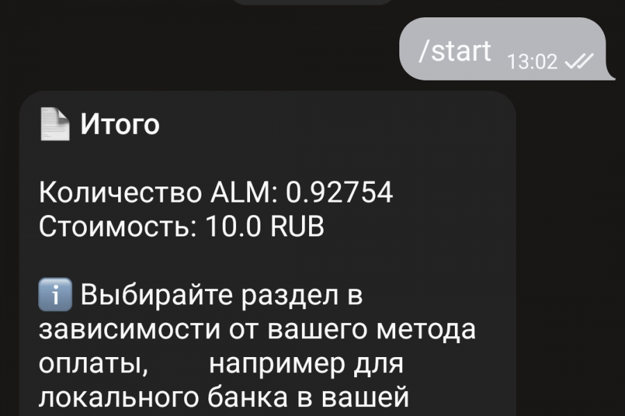 Telegram бот написан на python. Бот предназначен для покупки криптовалюты. Понятная конфигурация, реферальная система, пополнение через карты, qiwi, yoomoney. Посмотреть бота можно по ссылке: https://t.me/altrum_official_bot