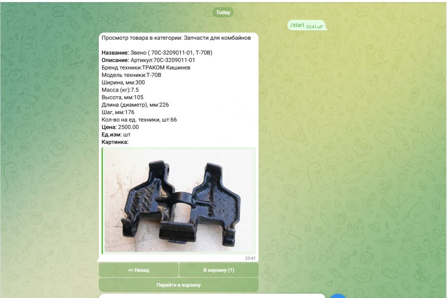 Продам Telegram-магазин для продажи автозапчастей на сельхоз технику или иной вид транспорта. О дополнительном функционале договоримся заранее, если таковой потребуется. Прикручена онлайн-оплата через ю-money.
