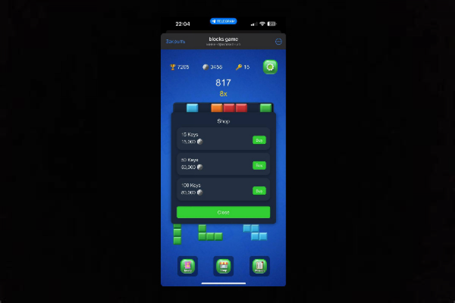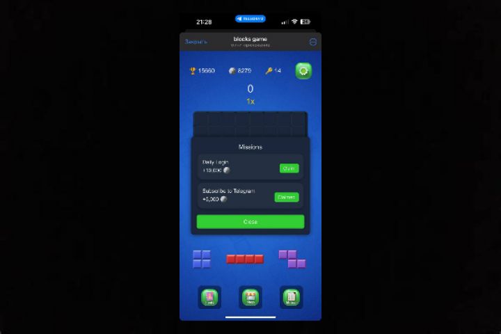 Telegram Web App игра . Аналог игры Block Blast! Игра без багов , полностью рабочая , посмотреть можете тут https://t.me/blocksgame_bot @blocksgame_bot (https://t.me/blocksgame_bot). Вместе с ней продаю и telegram канал t.me/blocksgame . При покупке вы получите файл со всей игрой , передам бота в BotFather . По цене можем договорится