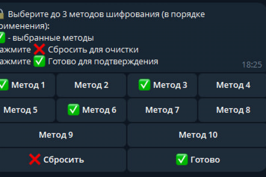 Избирательная расшифровка: Сообщения видны только тем, кто выбрал идентичные методы шифрования в том же порядке. Для остальных — это зашифрованный текст.