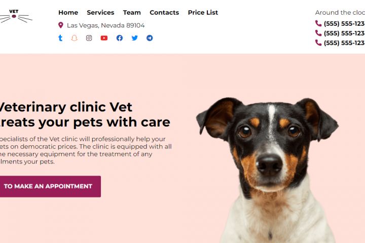 WordPress тема для ветеринарной клиники, реализованная на плагине Elementor.