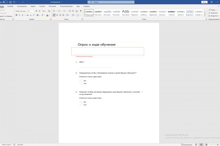 Тест о ходе прохождения обучения с наставником 10 вопросов + тест мотивационного уровня сотрудника 7 вопросов