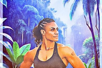 постер "this is sport 0 и спортсменка в джунглях" композиция предназначена для оформления фитнес-клубов (были использованы нейросети).