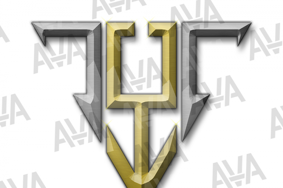 Узор созданный полностью вручную изображающий разделённый на 3 элемента треугольник из металлических элементов.