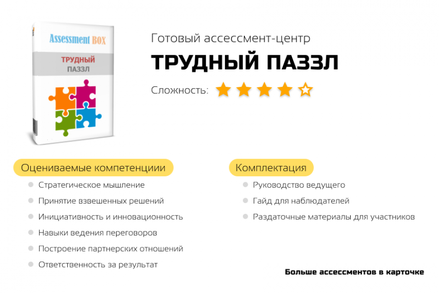 Участники выступают в роли менеджеров по работе с партнерами компании, производящей паззлы из натуральной древесины в премиум-сегменте. Партнеры компании – частные мастерские, которые разрабатывают дизайн паззлов и производят ограниченные авторские серии. С мастерскими необходимо выстроить финансово выгодные взаимоотношения, обеспечив стандартизацию производства при сохранении уникального стиля. У каждой мастерской есть свои особенности, преимущества и недостатки. Участникам необходимо обоснованно выбрать 3 мастерских из 5-ти для партнерства и составить план развития взаимоотношений (обновление оборудование, передача технологий и пр.).