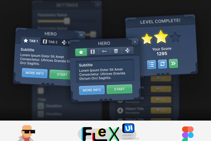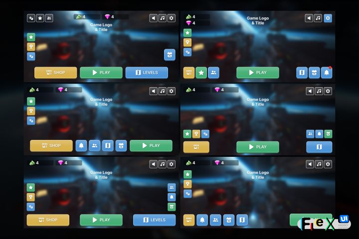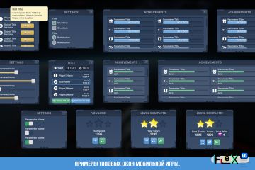 Уже готовый UI Kit (набор элементов интерфейса) для вашей игры с примерами основных окон типичной мобильной игры (БОЛЕЕ 70 примеров).