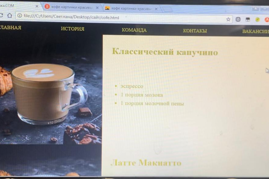 Продаю: Верстку сайта с дизайном для кофейни. - готовая работа на продажу :7220