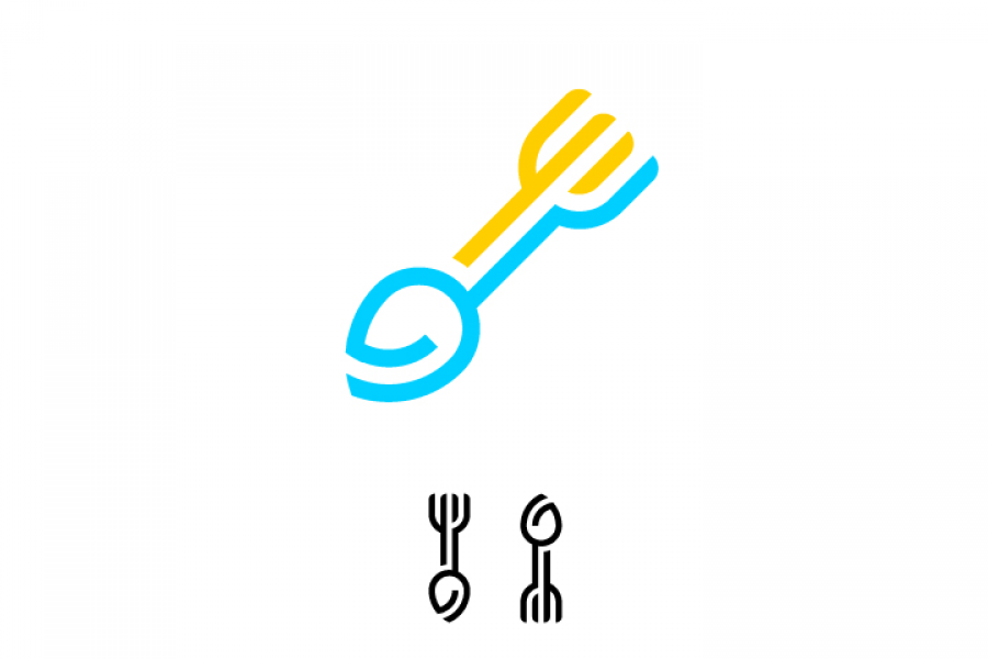 В знаке соединены следующие образы: вилка, ложка, еда, динамика, оригинальность. Логотип подойдет для компании связанной с едой, кафе, рестораном, фаст-фудом, кейтерингом, подходит и для других сфер деятельности. Знак лаконичен и минималистичен, может использоваться в одном, двух цветах. Знак построен по пропорциям. В логотипе используется свободный шрифт Raleway