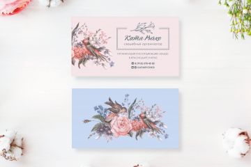 Отличные, запоминающиеся двусторонние визитки. Птички вьют гнездо семейного счастья) Доработки - вбить ваши данные.