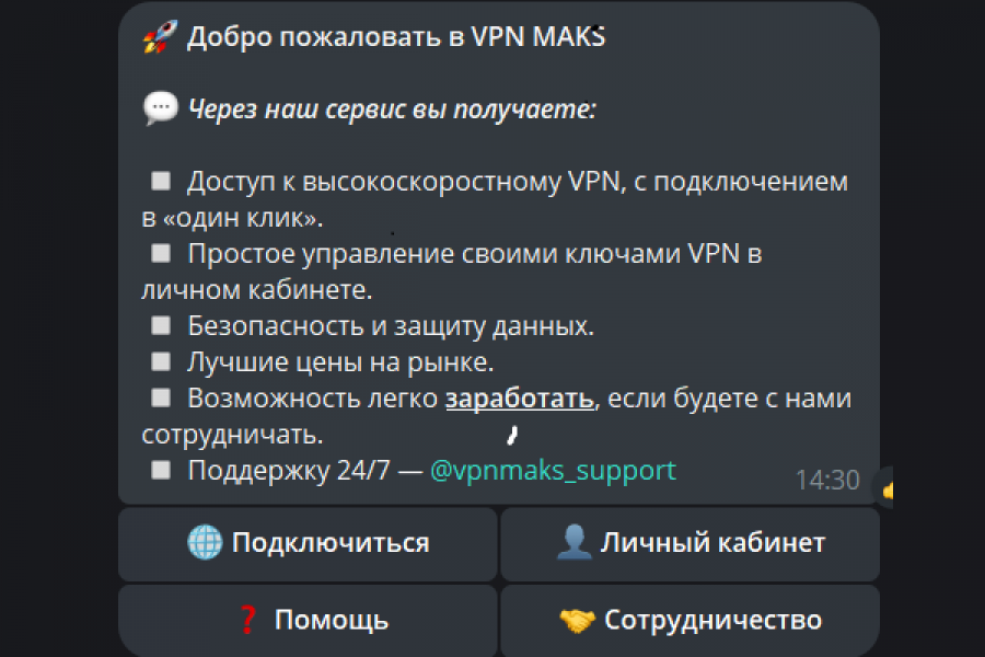 • Уведомления — напоминания о сроке действия ключей и реферальных бонусах.