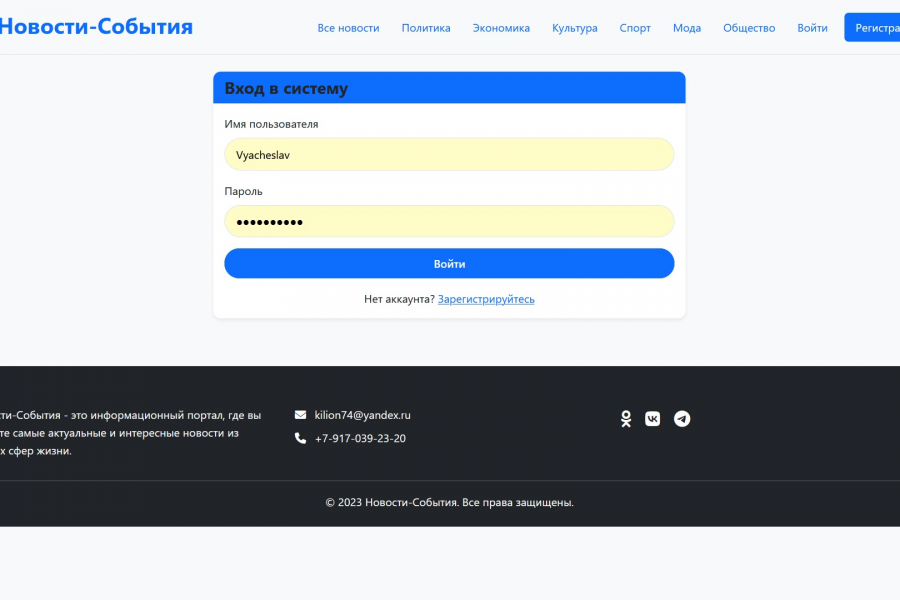 Web-приложение "Новости-События" разработан на языке Python с помощью фреймворка Flask, представляет собой платформу, предназначенную для обработки, отображения и взаимодействия с новостями и событиями, происходящими в мире. Приложение предлагает пользователям удобный способ оставаться в курсе последних новостей и мероприятий, активно вовлекая их в процесс.
