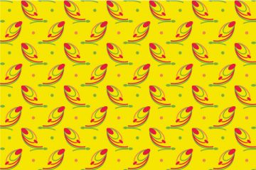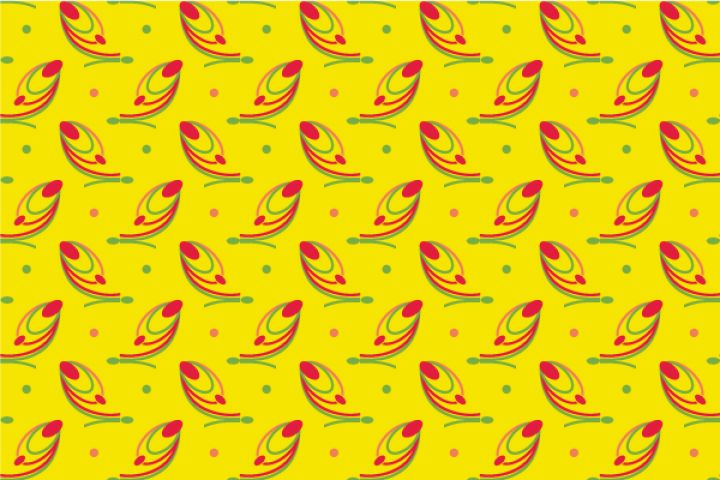 Ягоды. Разноцветный рисунок на жёлтом фоне с изображением стилизованного мотива ягод. Абстрактный рисунок. Изображение можно использовать в качестве фона, обоев, в текстильном дизайне детского ассортимента, для изделий печатной и сувенирной продукции.