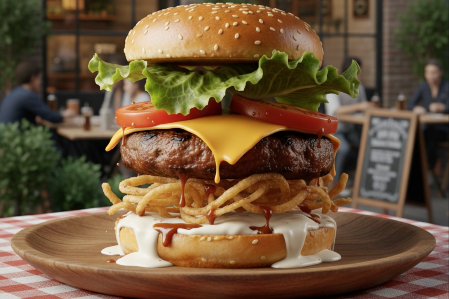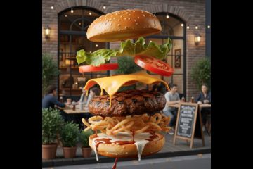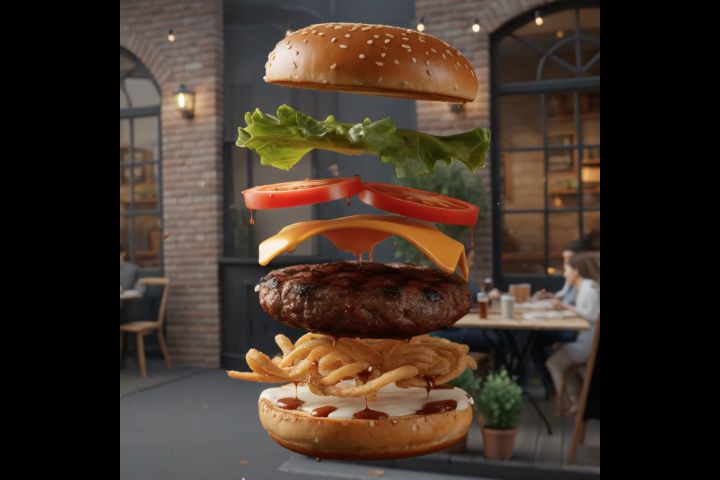 Вашей рекламе не хватает магии и виральности? Этот уникальный видеокреатив с летающим и крутящимся гамбургером гарантированно приковывает взгляд и удерживает внимание до последней секунды! В начале бургер собирается в воздухе из ингредиентов и крутится на фоне кафе с посетителями под динамичную музыку и в конце приземляется на тарелку которая стоит на столе.
