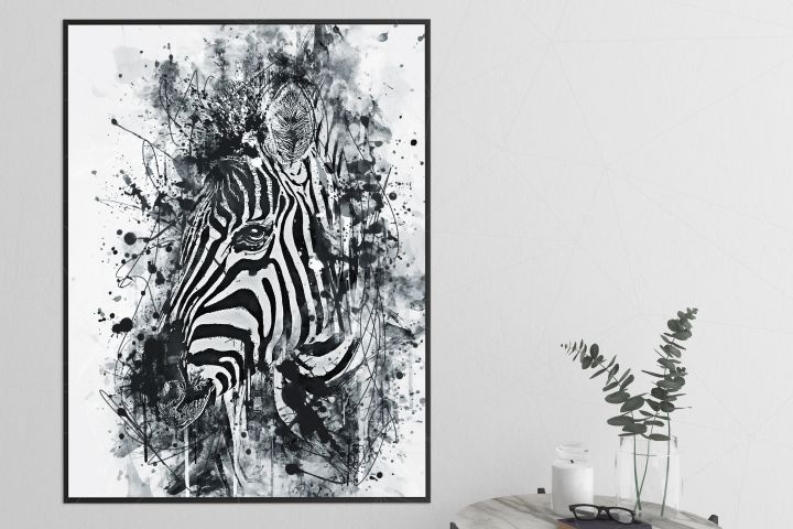 Креативное цифровое изображение зебры. Ручная работа, выполненная на графическом планшете в растре. Стилизация: чернила, акварельные краски, маркер. Подойдет как украшение смелого современного интерьера (картина для печати на холсте), так и для использования в веб-пространстве. Максимальный размер по высоте (70 см) 300dpi.