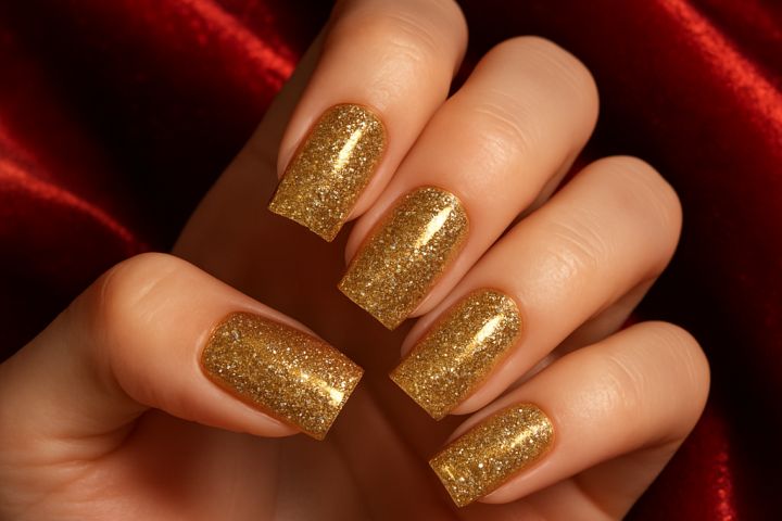 Изображение женской руки с ухоженным маникюром на красном фоне в формате JPEG, высокое качество, яркий контраст, подходит для рекламы, соцсетей и презентаций дизайнов ногтей
