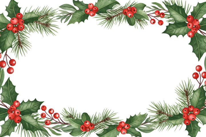 Акварельная рамка с ветвями остролиста, хвои и красными ягодами, созданная нейросетью. Идеально подходит для оформления праздничных открыток, приглашений, плакатов и упаковки. Лёгкий и уютный новогодний дизайн, создающий атмосферу зимнего волшебства и уюта.