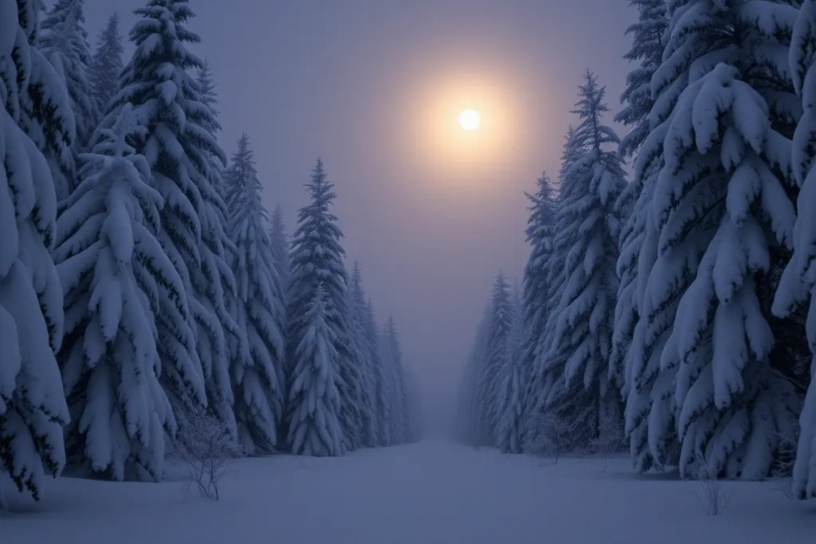 Зимняя прогулка по лесу, работа выполнена с использованием нейросетей, Тихий зимний лес.