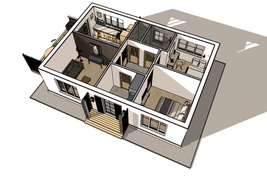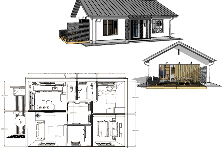 Стоимость услуги: 10000 руб. здание 100 кв.м. 3D виды экстерьера с разных ракурсов. 3D виды планировок с расстановкой мебели Перечень основных отделочных и строительных материалов (наименование и производитель)