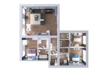 Сделаю 3д визуализацию плана коттеджей,квартир,рабочих помещений,уличной территории и тд.Возможность визуализации как под прямым углом,так же и аксонометрически (см. фото)