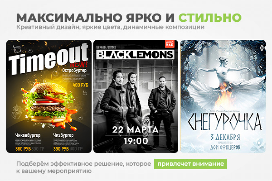Креативный дизайн, яркие цвета, динамичные композиции и точная подача информации – всё для того, чтобы ваше мероприятие стало событием, о котором говорят!