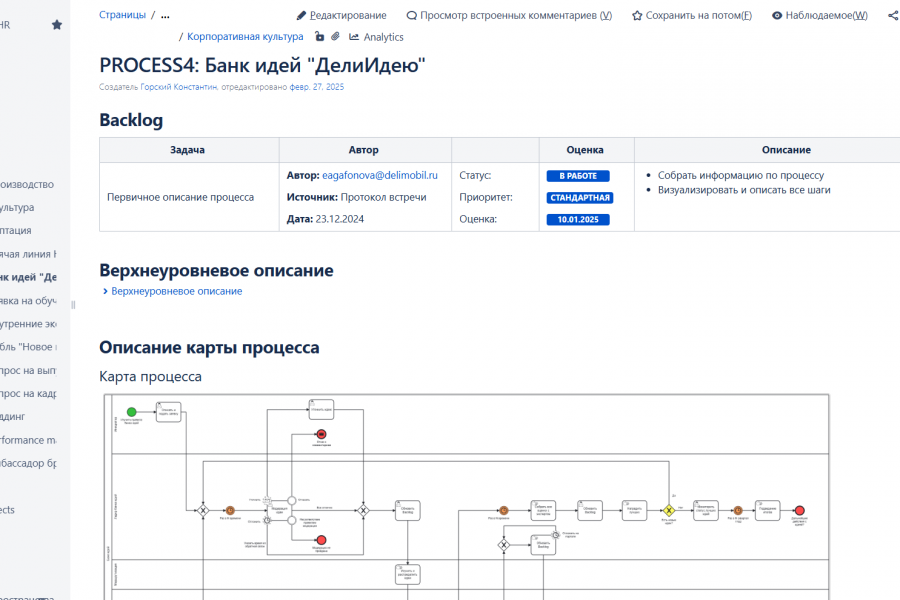 - Карта AS-IS на основе внутренних регламентов, интервью пользователей.